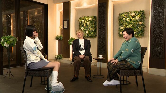あのさんとやす子さんは、バラエティ番組での共演が多く、お互い忙しくしているため「体調大丈夫ですか」といたわり合う仲。やす子さんは、尾崎さんがボーカルのクリープハイプの大ファンで、高校生のころには地元でライブも見に行っていたといいます。一方、尾崎さんは、あのさんに楽曲提供をしています。
