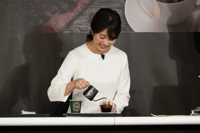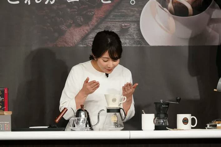 「(お湯を)ゆっくり回しながら淹(い)れることで美味しくなります」と解説した木村は、淹れたコーヒーを回しながら、「ここで魔法の言葉があります」と一言。木村は「美味しくなーれ、美味しくなーれ」と笑顔で唱え、司会者をうっとりさせていた。