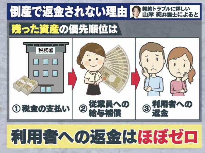 しかし、利用者への返金に至る前に、資金がついえてしまうケースがほとんどで、利用者への返金はほぼゼロになってしまうということです。