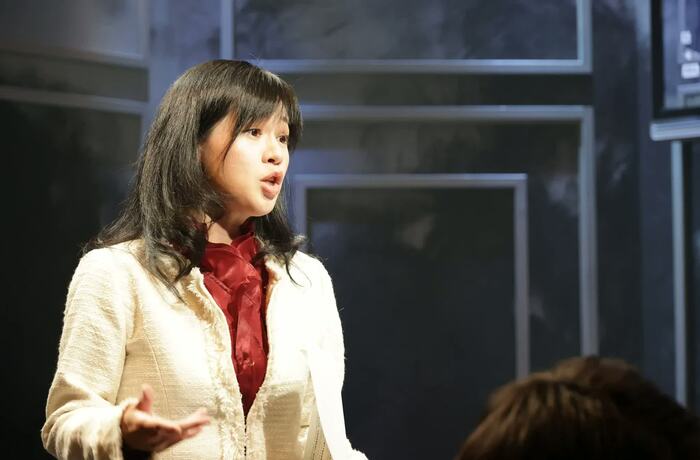 上西が演じるのは、とある地方の市議会議員・岸本。白いスーツにボルドーのブラウス。まるで、議員時代の彼女を彷彿とさせる装いで、ステージに現れると、先輩にあたるベテラン議員たちを糾弾しはじめる。