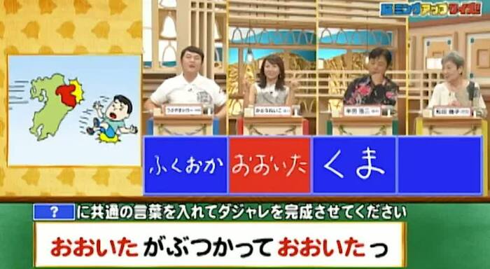 正解は「おおいた(大分がぶつかってお〜痛っ)」。かとう1人が見事正解!