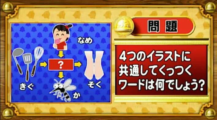 次はダジャレ穴埋めの問題。「?」に共通する言葉を入れてダジャレを完成させよ。