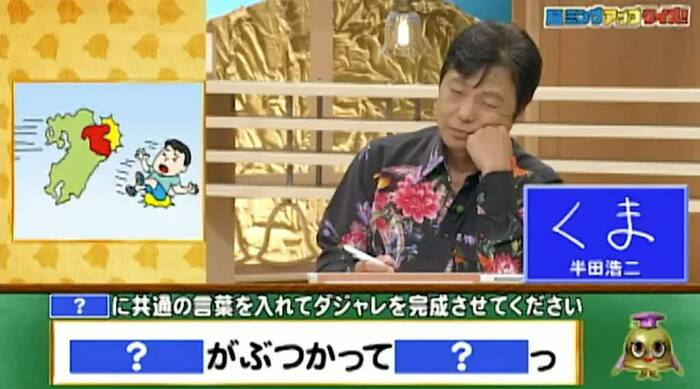 半田の答えは、「くま」。熊本に知り合いが多いらしいが…。