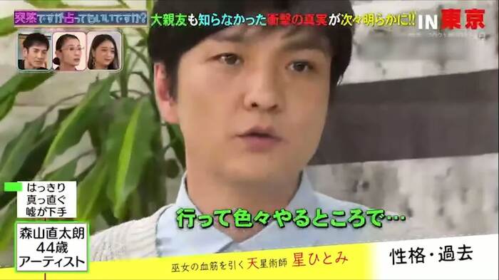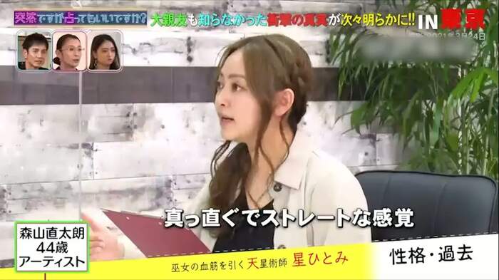 さらに、森山の性格については「真昼タイプ。まっすぐで嘘が下手。時代より先を走っていて、フワちゃんと同じ星が入っている。海外で自由に表現するような…」と星がいうと、森山は「短期間ですけど、海外でいろいろやろうとしていたところにコロナ禍が来たんです」と告白。