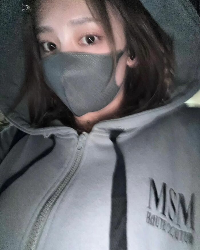 また、グレーのトップスにフードを被り、グレーのマスクを付けて下からのアングルで自撮りしたかのような写真などが公開されています。