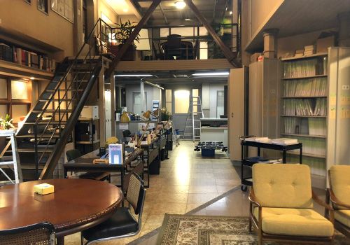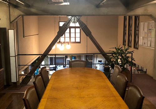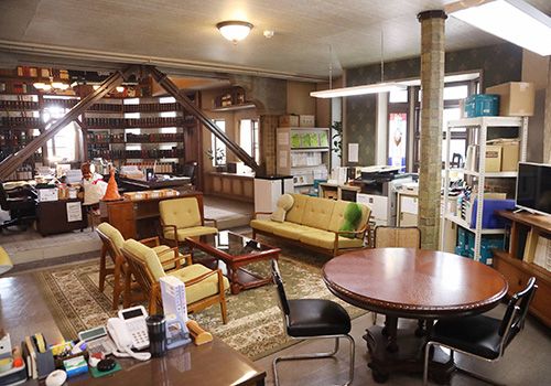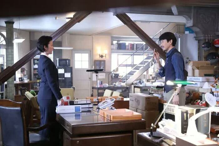 実際のオフィスを取材したうえでアレンジしてます。リアルでは裁判官と書記官の部屋は分かれていますが、ドラマでは一つの部屋にして、エリア分けしています。ここでまた監督のこだわりなのですが、部屋のど真ん中に逆V字型の大きなむき出しの鉄骨を入れています。この鉄骨はセットのシンボルとして、 “古い建物”感、“赤字続きの問題支部”感も出せるし、頭をぶつけそうになる芝居もできます。また、主人公のデスクの後ろにある“ふるさと納税”エリアは装飾スタッフの遊び心が満載です。