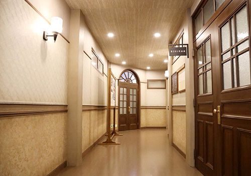 裁判所の建物ロケにも程良いレトロ感のある所を選びました。郊外の施設をお借りしているのですが、白い壁の明るい雰囲気で、天窓があって上品な感じが決め手でした。大きすぎない点でも、裁判所の架空の“支部”感が出せていると思います。