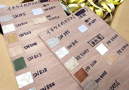 工場でのセット制作の際、どこにどの壁紙を使ったか、そのデータをサンプルとともにファイリング。意外に手作り感満載だ。