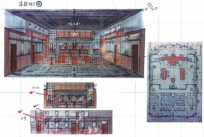 法廷、裁判官・書記官のオフィスを中心に展開するこのドラマのセットデザインを手がけた、あべ木陽次(※あべは、木偏に青)に、セット制作のこだわりについて聞いた。