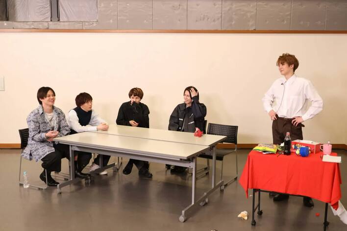 また、連帯責任を請け負うメンバーをくじ引きで選んだ結果、ユーキが失敗した場合はタカシも罰ゲームを受けることに。超特急で唯一のボーカルを務めているタカシを引き当てたこともあって、彼からは「じゃあ、俺が(歌詞を)口パクしとくから見といて」とユーキへ絶大なフォローが。