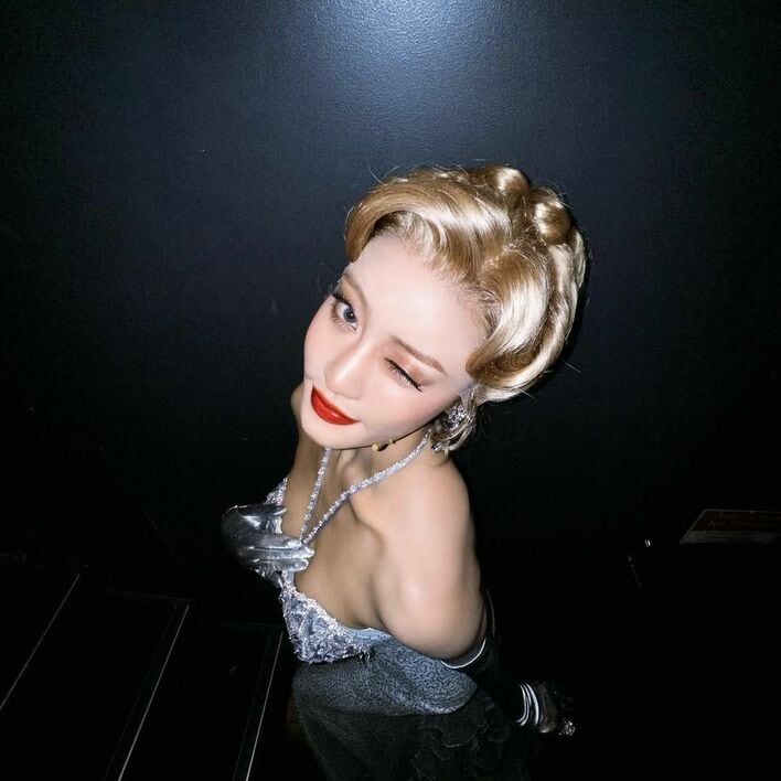 投稿された写真には、ブロンドヘアの王林さんが大きく胸元が開いたスパンコールの衣装を着て、カメラに向けてウィンクをしている姿が!