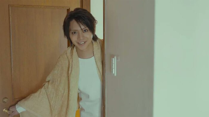 彼女から手渡された服を「了解です」とハニカミながら受け取り、たたむ姿には優しさが溢れている。