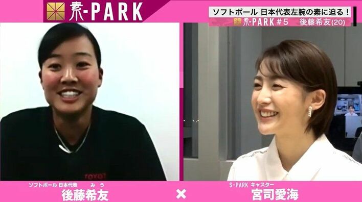 第5回は、4月25日(日)「知っ得!胸きゅんアスリート」のコーナーに出演した、東京オリンピック日本代表最年少の新星サウスポー、ソフトボールの後藤希友(ごとう・みう)選手が登場。宮司アナとトークを繰り広げた。