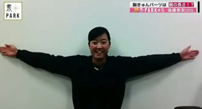 後藤選手:そうですね。「腕が長い」と、よくいろんな方から言われることが多いです。