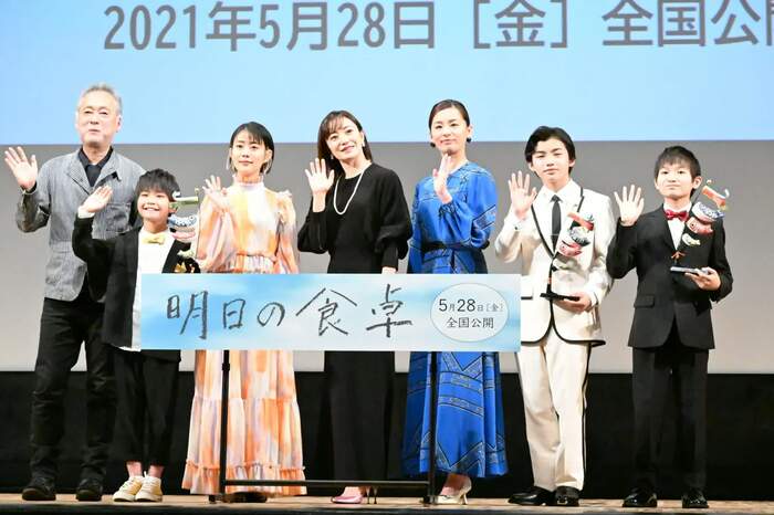 5月5日(水)、映画「明日の食卓」完成報告会が行われ、菅野美穂、高畑充希、尾野真千子、子役の柴崎楓雅、外川燎、阿久津慶人、瀬々敬久監督が出席した。