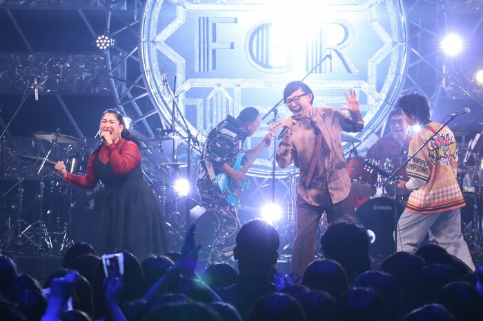 『芸人ロックフェス』の常連・長田庄平(チョコレートプラネット)さんは、川崎鷹也さんの『魔法の絨毯』を、ちゃんぴおんずは、ゆめっちさんをコーラスに迎え、Mrs. GREEN APPLEの『点描の唄』を。