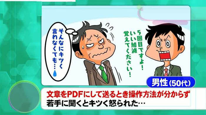 「デジタルが苦手で、若手に操作方法を質問するのだが、同じことを5回も聞くなと怒られて傷ついた」(50代男性)、「デジタルが苦手な上司が、デジタルに関わる仕事を丸投げしてくるのをどうにかしてほしい」(20代女性)という、「テクノロジーハラスメント=テクハラ」の事例も登場した。