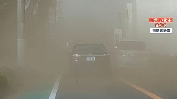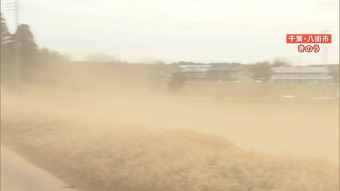 千葉・八街市の落花生畑では、砂が強風で巻き上げられ、数メートル先の対向車も見えないほどになっていました。
