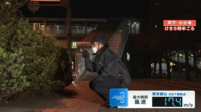 一夜明けた16日午前5時30分ごろ、東京・お台場では、猛烈な“春の嵐”が続いていました。