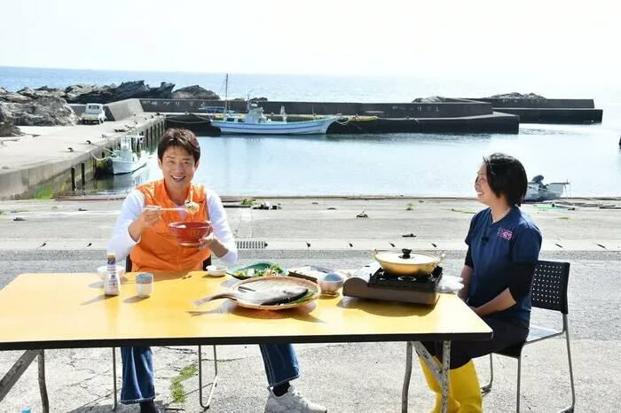 続いて、いい出汁が出るという漁師のまかない飯「ウスバハギのみそ汁」を実食。「すごくいい出汁です」とコメントする松岡に、「骨もそんなになくて、身離れがよくて、食べやすい魚だと思います」と梅木さんもウスバハギをアピール。