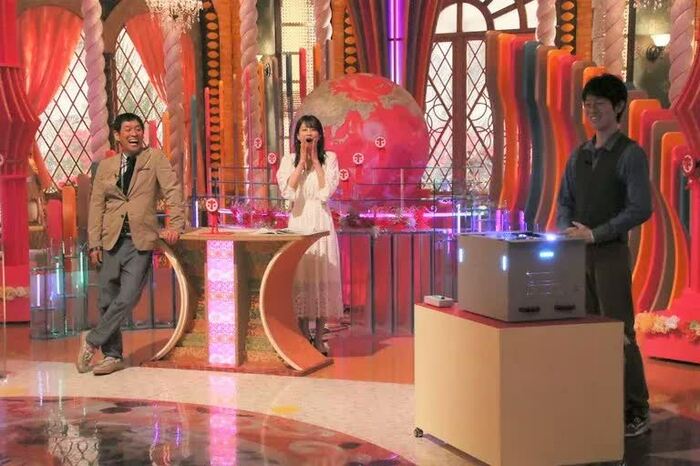 そして、「ものが倒れない台車」、「美肌になるシャワー」、「ゴージャスに登場させる箱」、「遊び心あふれるナビ機能付きの傘」、「スイーツを作れる3Dプリンター」など、夢があふれる未来のアイテムが次々と登場し、その場で体験していく。