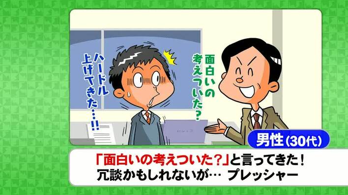 「新商品の企画会議前に、上司が『面白いの考えついた?』と圧をかけてくる」という30代男性のエピソードでは、松尾が「収録やネタ終わりに、番組スタッフから『今日は面白かった!』と言われても、それはそれで『ホントか?』と疑ってしまう」と苦笑い。