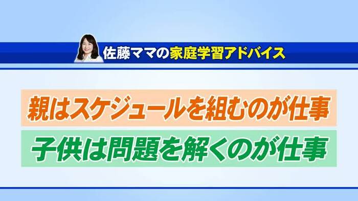 佐藤ママによると子供には“終わり”が見えていないので、「今日は何問を何分で終わらせる」のように数字でスケジュールを指示すると、ゴールが明確になり、勉強に取り組みやすくなるという。