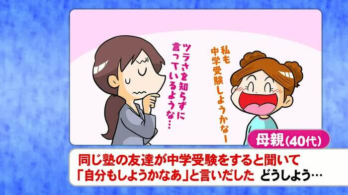 「小5の娘が『友達が受験するから』という理由で、中学受験したいと言い始めた」という40代女性のエピソードでは、「そんな理由で中学受験をするという娘に、受験をさせるか?」と「せきらら投票」で投げかけた。