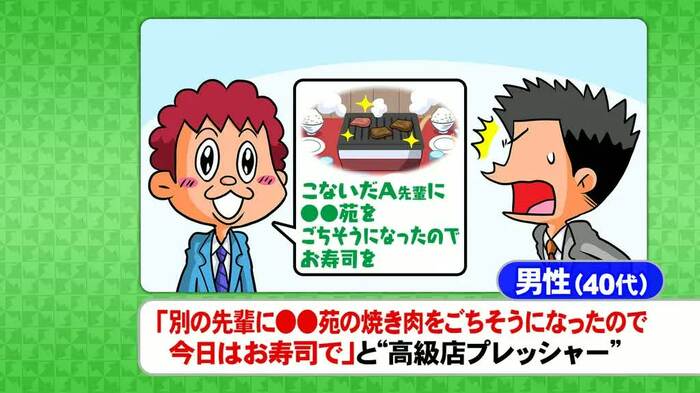 「後輩と食事に行く時、『別の先輩は焼き肉をご馳走してくれたので、今日はお寿司がいい』と言われた」(40代男性)と、後輩が“圧”をかけてくる例も紹介された。