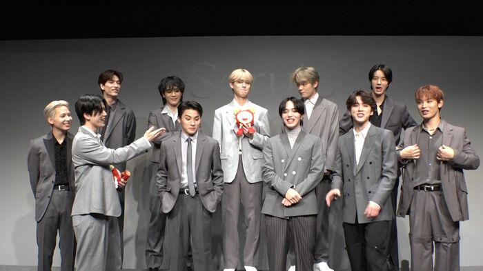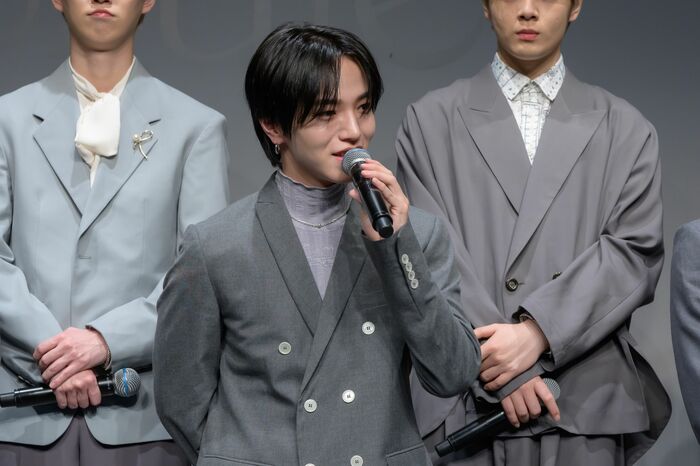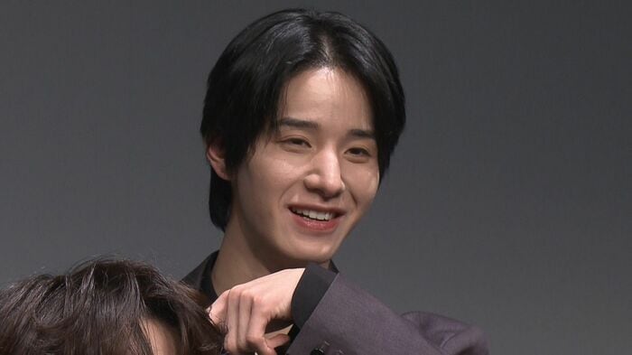 「佐藤景瑚が自分のシーンが終わると、すぐメンバーの方を向いて変顔するんですよ」と、撮影の裏側を暴露すると、佐藤さんは「マネキンチャレンジみたいだったので楽しく、ついみんなを笑かそうとしてしまいました。それでスケジュールがちょっと押してしまいましたけど...すみません(笑)」と、ちゃめっ気たっぷりにコメントしました。