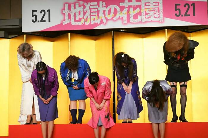 4月21日(水)、映画「地獄の花園」完成報告謝罪イベントが行われ、永野芽郁、広瀬アリス、菜々緒、川栄李奈、大島美幸、遠藤憲一、小池栄子が出席した。