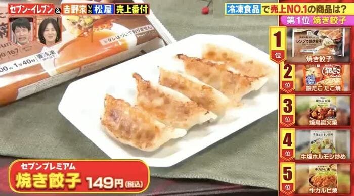 そして1位は、フライパンを使わずに焼きたての味を楽しめる「焼き餃子」。しょうゆなどでしっかり下味をつけているので、タレなしでも美味しく味わえることから、3年連続売上1位を獲得する商品となったという。