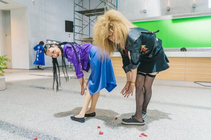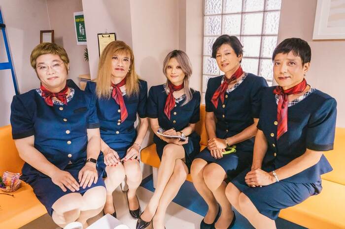 本作の脚本を務めたバカリズムとともに、ヤンキー界ではお馴染み(!?)の“あのチャリで来た”ポーズをノリノリでキメた集合写真や、美脚を惜しげもなく披露してSNSでも話題となっている遠藤が、本家とともに“菜々緒ポーズ”で並んだお茶目な姿、本編中の暴れっぷりが嘘のような(株)トムスンのOL美女たちのおしとやかなショットも。