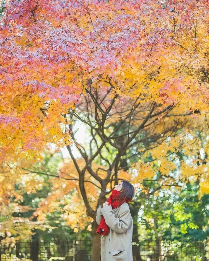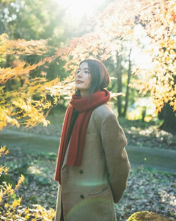 まるで紅葉を見に、一緒に散歩しているかのように感じられるショットを複数披露していました。
