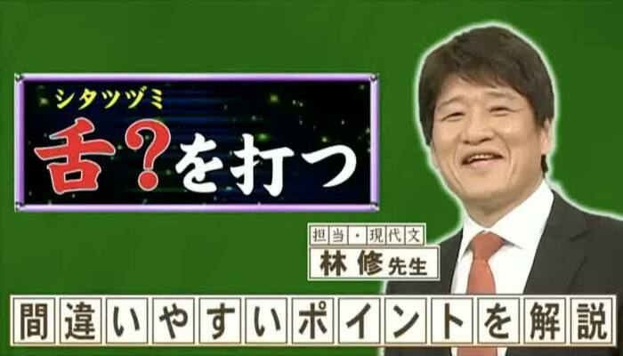 「舌鼓」を漢字で書く問題では、現代文の林修先生が言葉の由来と読み方について教えてくれた。