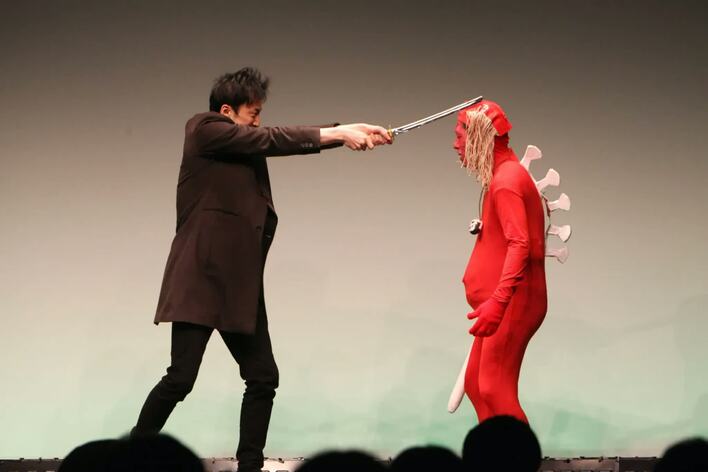 ライブのトップを飾ったのは、タイタン所属の若手、シティホテル3号室。“子どもの魂を食う化け物”が登場するも、その化け物が奪ったのは“子役の魂”。子役の苦労、悲哀、活躍の裏にある努力を、朗々と語る化け物に圧倒される展開。
