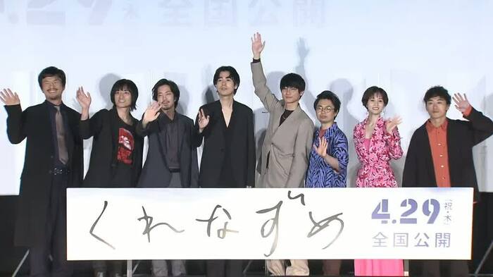 成田凌が主演を演じる映画「くれなずめ」の完成披露舞台挨拶が4月15日(木)に行われ、共演者の高良健吾、若葉竜也、浜野謙太、藤原季節、目次立樹、前田敦子、松居大悟監督と共に登壇した。
