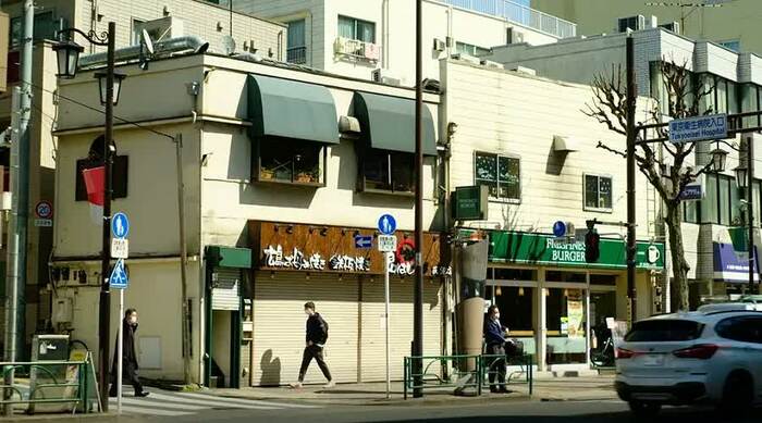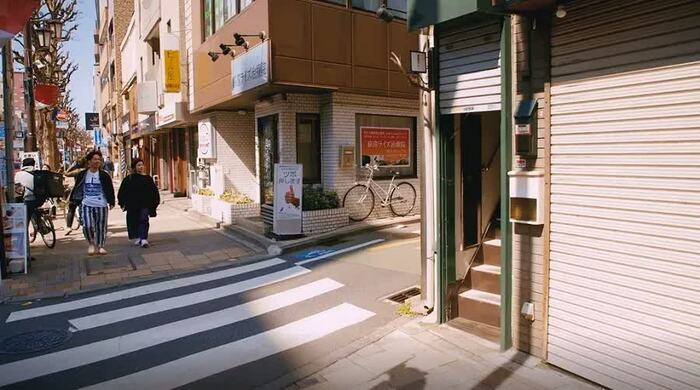 櫻井:ここなんですよ。シャッターも半分閉まっていて。この狭い階段を上がっていきます。