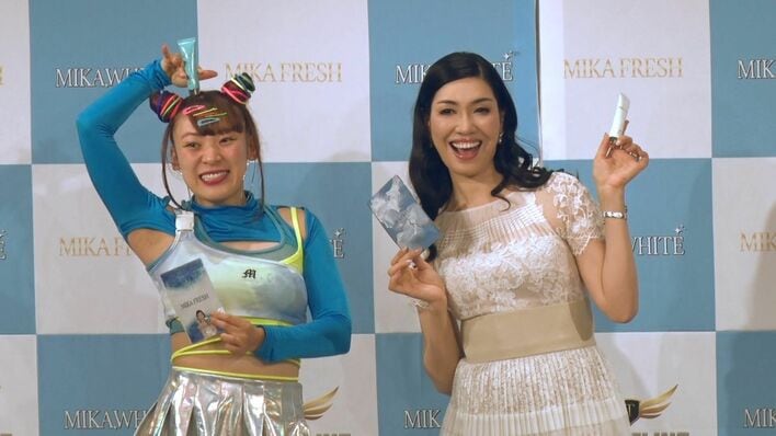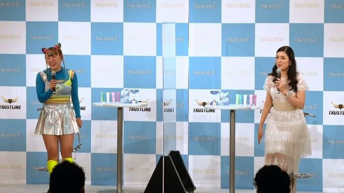 4月14日(水)、モデルでタレントのアン ミカがプロデュースする口臭ケアサプリメントとホワイトニング歯磨き粉の新商品発表会が行われ、友人でもあるYouTuberのフワちゃんと共に登場した。