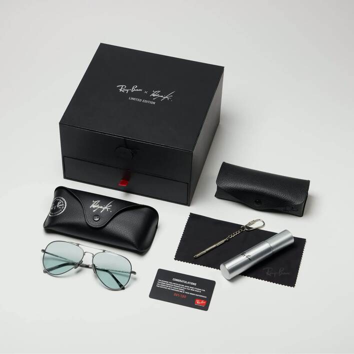 また、「僕にとってRay-Banとの出会いは、10代の頃に見た映画『トップガン』のトム・クルーズが掛けていたティアドロップ型のアビエーターで、その姿に憧れて以来ずっと愛用しています。初のコラボレーションには思い入れのあるアビエーターを指名して、日本製のチタンフレームとレンズのカラーを選びました。紫外線に反応するライトカラーの調光レンズなので室内でも屋外でもいろんな場面で、スタイルを表現するファッションアイテムとして使ってもらいたいです」と、リミテッドエディションのモデルに対するこだわりも明かした。