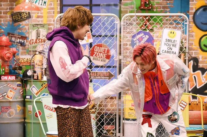 「お願いしまーす!」と元気な声でスタジオに入ってきた2人。続けて兼近は、「寝起きだー!」と大きな声をあげるも、元気いっぱいの足取りでセットの中へ。