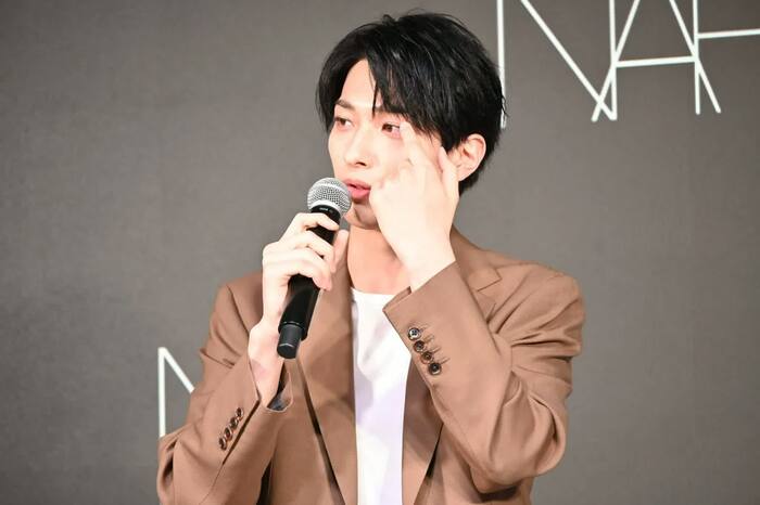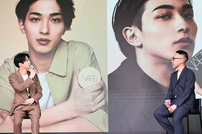 4月13日(火)、化粧品ブランドNARS JAPAN cosmeticsが「NARS 新クッションファンデーション発売記念会見」を資生堂ビューティー・スクエアで開催。キービジュアルに登場する横浜流星が、同ブランドのグローバルアーティストリーディレクター・伊藤貞文とともに出席した。
