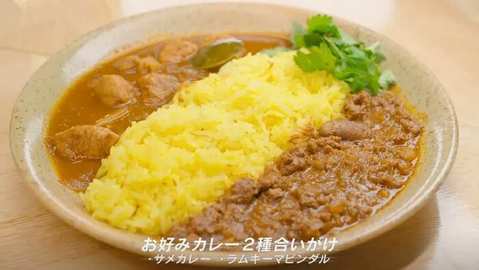 本日のカレー 「お好みカレー2種合いがけ(サメカレー・ラムキーマビンダル)」