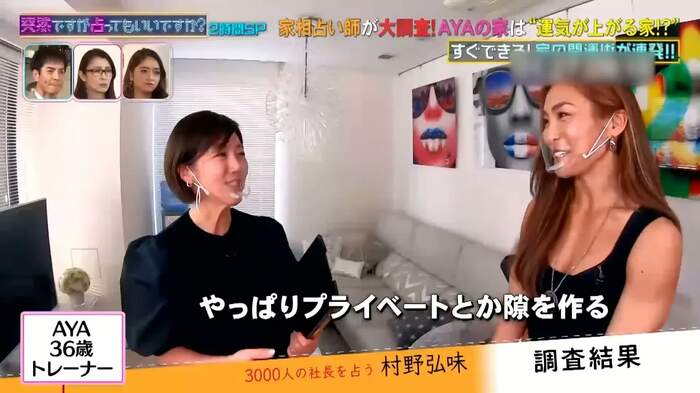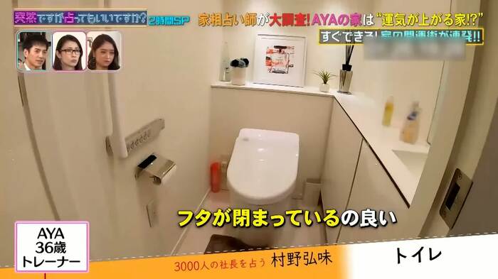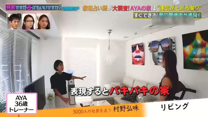 4月7日(水)、フジテレビでは『突然ですが占ってもいいですか?SP』が放送され、クロスフィットトレーナー・AYAの住む家賃38万円のマンションを家相占い師・村野弘味が鑑定した。