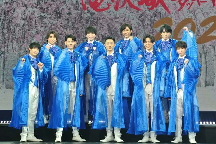 その意図を問われると、岩本が「最前線で戦ってくださっている医療従事者の皆様へ感謝とエールの思いを込めまして、昨年公開された映画『滝沢歌舞伎 ZERO 2020 The Movie』から青へと変えました」と説明。