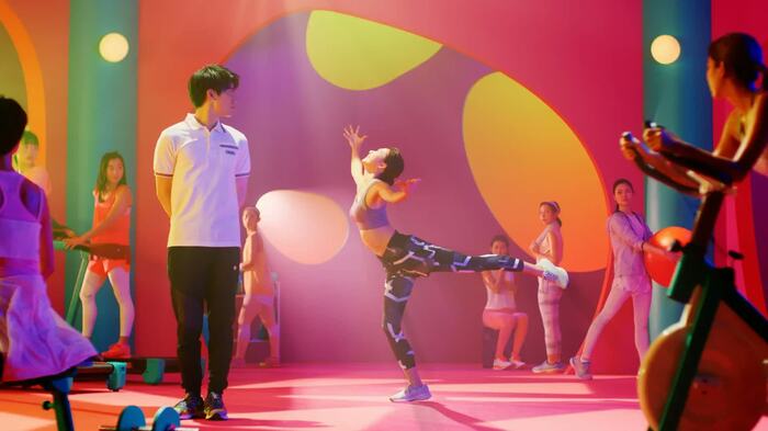 また、運動する女性たちを見守る最後のシーンでは、壁からかわいらしくひょっこり覗くような遊び心も時折見せて、現場を和ませていたという。