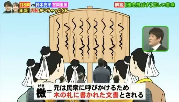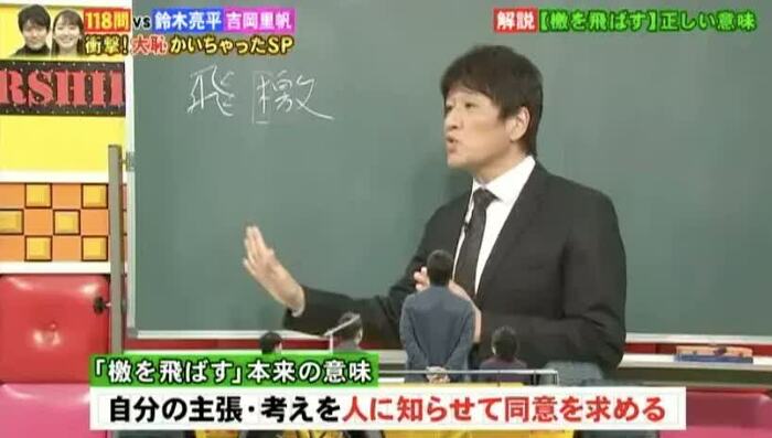 「檄(げき)を飛ばす」を漢字で書く問題では、林先生が「檄」の由来と正しい意味を教えてくれた。