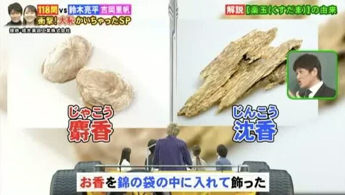 林修先生が解説してくれたのは、「くすだま」を漢字で書く問題だ。「くすだま」=「薬玉」は、もともと、麝香(じゃこう)や沈香(じんこう)などのお香を、錦の袋の中に入れて飾るものを表す言葉だった。