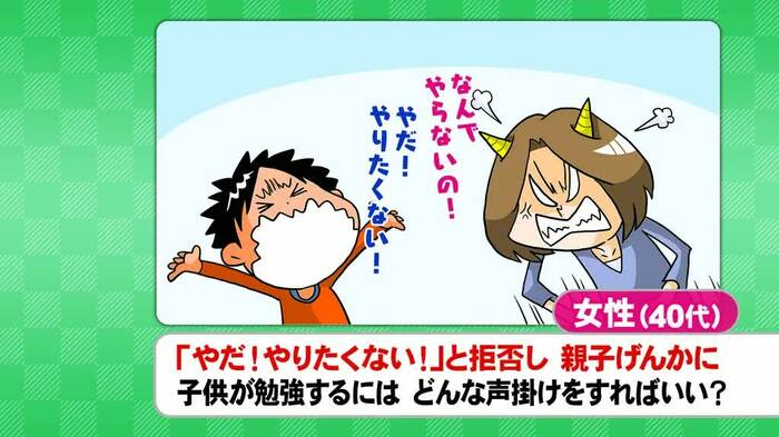 「春休みで宿題のない小3の息子にドリルをやってほしい。どんな声かけをしたらいいのか?」という40代女性の質問では、視聴者の意見を募る「せきらら投票」で「勉強をしない子供にイライラする親の気持ちが理解できるか?」と問いかけた。