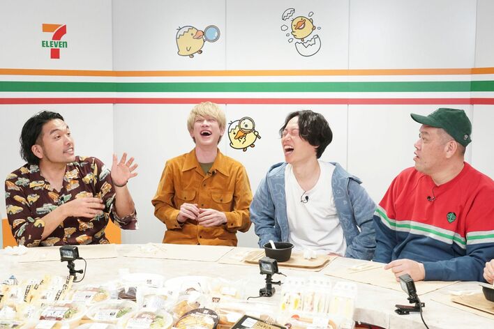 レギュラーメンバーがロケに出動する企画はこれまでにもありましたが、全員がそろうロケは今回が初。今回は「祝放送100回記念SP!セブン−イレブン人気商品食べ尽くし!」と題し、「セブン‐イレブン」のおにぎりやスイーツ冷凍食品など、グルメ8ジャンルから、それぞれのオススメ商品をピックアップした42品の全制覇を目指します。